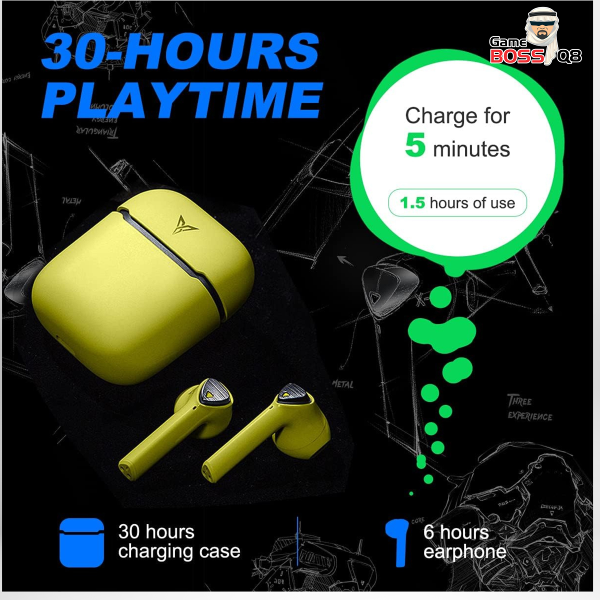 سماعة مخصصة للالعاب توفر عزل صوت ، سرعة تاخير الصوت في اللعاب 50ms ، مقاومة للعرق و الماء ، شحن سريع لمدة ساعات لعب اطول.