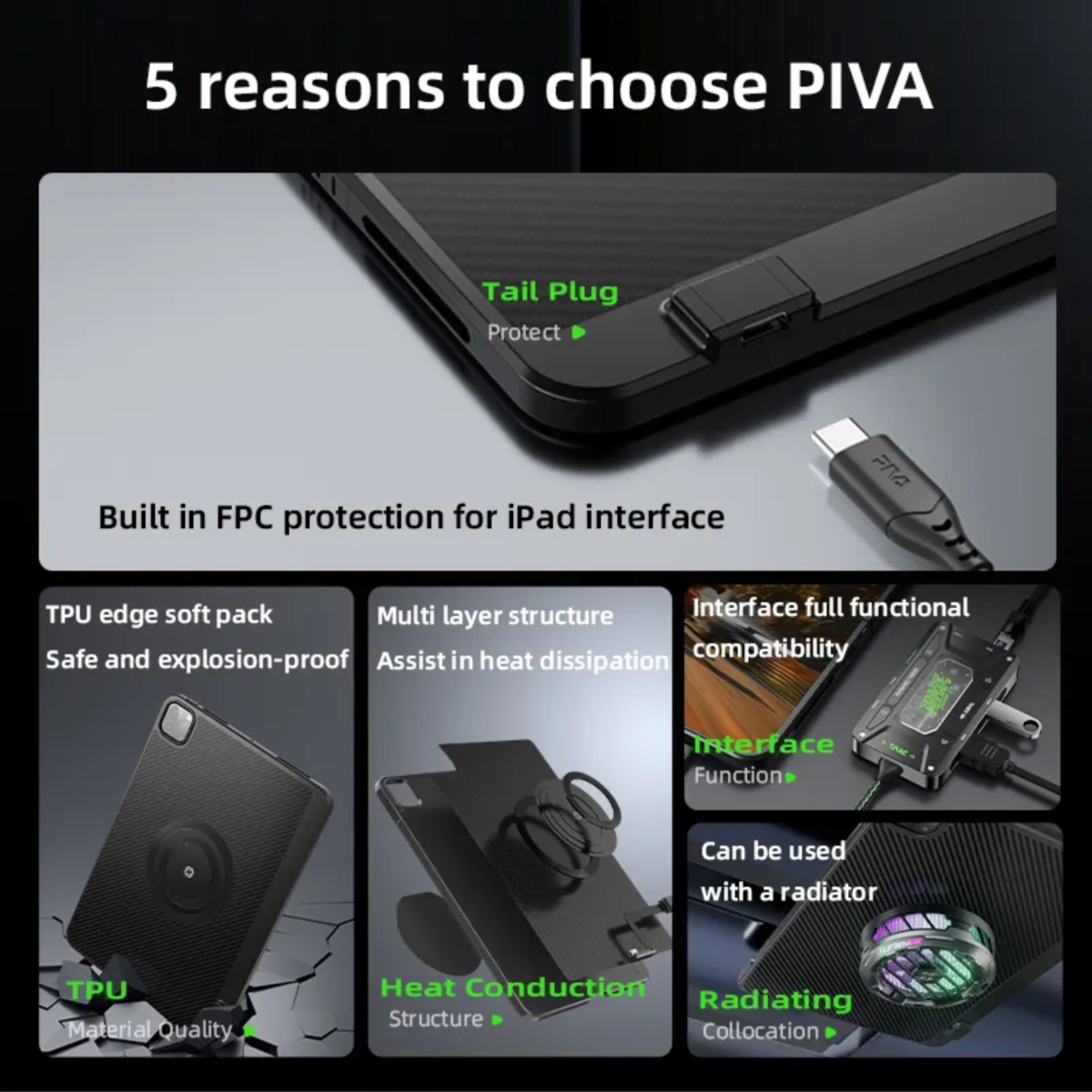 كفر للايباد M4 من شركة بيفا مع تصميم مدمج مع وصلة تغير منفذ التايب سي و مكان مخصص لمراوح التبريد 11″ انش