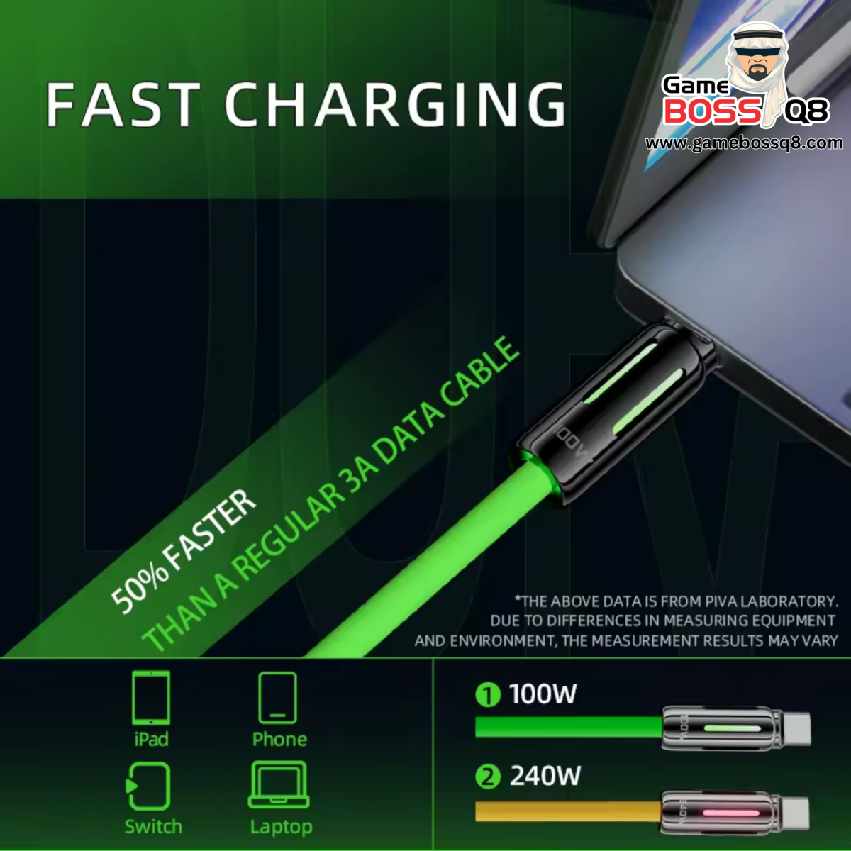 شحن بسرعة بقوة 240 واط / 5A و سرعة نقل بينات 480 ميغا بايت ، طول الكيبل 1.5 متر من مادة السيليكون